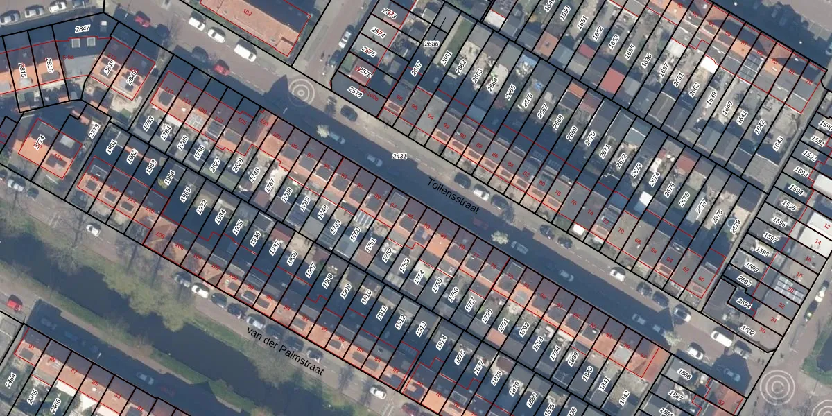 Gebruik de zoekbalk of klik op een perceel voor informatie over de adressen binnen dit perceel.