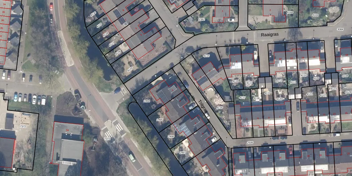 Het perceel waarop Trilgras 2 staat heeft een oppervlakte van 401 m². Dit is een groot perceel. De perceeloppervlakte wordt geregistreerd door het Kadaster. Gedetailleerde informatie over de maten van dit perceel kunt u vinden in het rapport Kadastrale kaart met maatvoering van Trilgras 2.