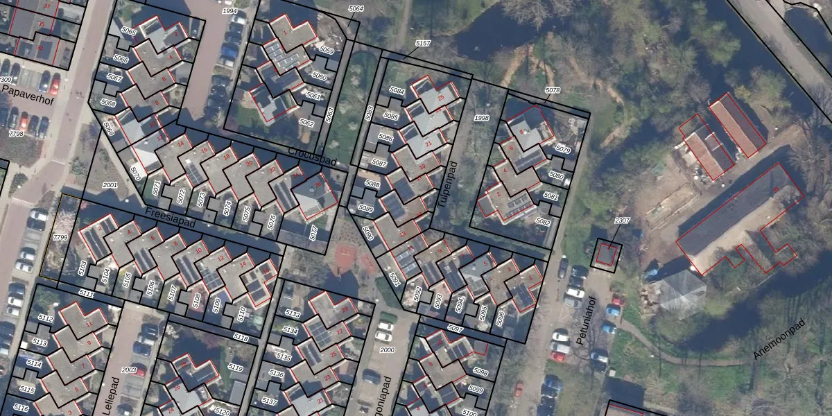 Het perceel waarop Tulpenpad 15 staat heeft een oppervlakte van 116 m². Dit is een middelgroot perceel. De perceeloppervlakte wordt geregistreerd door het Kadaster. Gedetailleerde informatie over de maten van dit perceel kunt u vinden in het rapport Kadastrale kaart met maatvoering van Tulpenpad 15.