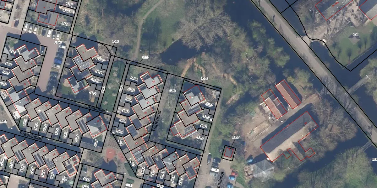 Het perceel waarop Tulpenpad 8 staat heeft een oppervlakte van 213 m². Dit is een middelgroot perceel. De perceeloppervlakte wordt geregistreerd door het Kadaster. Gedetailleerde informatie over de maten van dit perceel kunt u vinden in het rapport Kadastrale kaart met maatvoering van Tulpenpad 8.