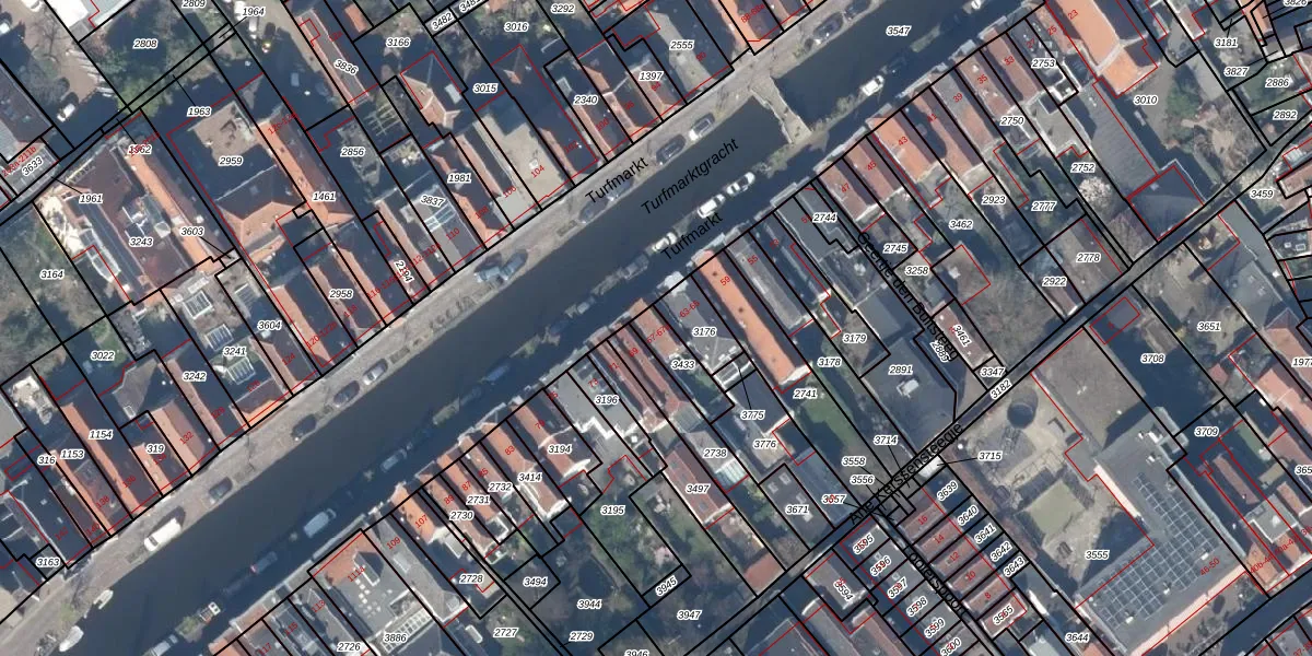 Het perceel waarop Turfmarkt 67 staat heeft een oppervlakte van 92 m². Dit is een klein perceel. De perceeloppervlakte wordt geregistreerd door het Kadaster. Gedetailleerde informatie over de maten van dit perceel kunt u vinden in het rapport Kadastrale kaart met maatvoering van Turfmarkt 67.