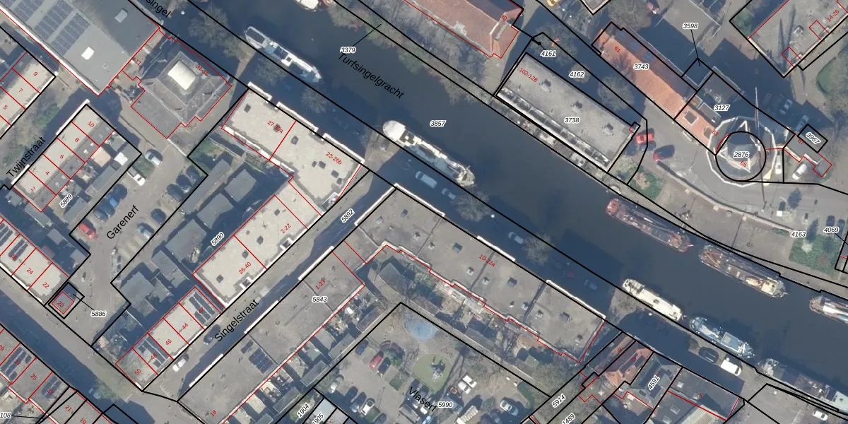 Het perceel waarop Turfsingel 22 staat heeft een oppervlakte van 2405 m². Dit is een zeer groot perceel. De perceeloppervlakte wordt geregistreerd door het Kadaster. Gedetailleerde informatie over de maten van dit perceel kunt u vinden in het rapport Kadastrale kaart met maatvoering van Turfsingel 22.