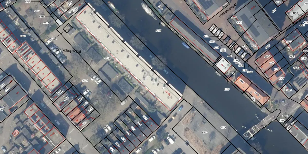 Het adres is gelegen op perceel 5818 in de sectie E en de kadastrale gemeente Gouda. De kadastrale aanduiding is aldus GDA01-E-5818. De gemiddelde perceeloppervlakte in de kadastrale gemeente Gouda is 678,78 m². Dit perceel is met zijn 2260 m² dus groter dan gemiddeld. Het kleinste perceel in de kadastrale gemeente is 0 m² groot. De grootste perceeloppervlakte is 24,2 ha. Op het perceel zijn 48 adressen aanwezig. De huidige grenzen van het perceel zijn digitaal in de Basisregistratie Kadaster (BRK) geregistreerd op 29-05-2007.