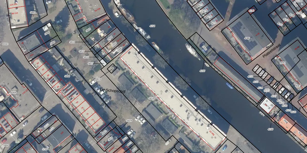 Het adres is gelegen op perceel 5818 in de sectie E en de kadastrale gemeente Gouda. De kadastrale aanduiding is aldus GDA01-E-5818. De gemiddelde perceeloppervlakte in de kadastrale gemeente Gouda is 678,78 m². Dit perceel is met zijn 2260 m² dus groter dan gemiddeld. Het kleinste perceel in de kadastrale gemeente is 0 m² groot. De grootste perceeloppervlakte is 24,2 ha. Op het perceel zijn 48 adressen aanwezig. In de Basisregistratie Kadaster (BRK) werden de grenzen van het perceel geregistreerd op 29-05-2007.