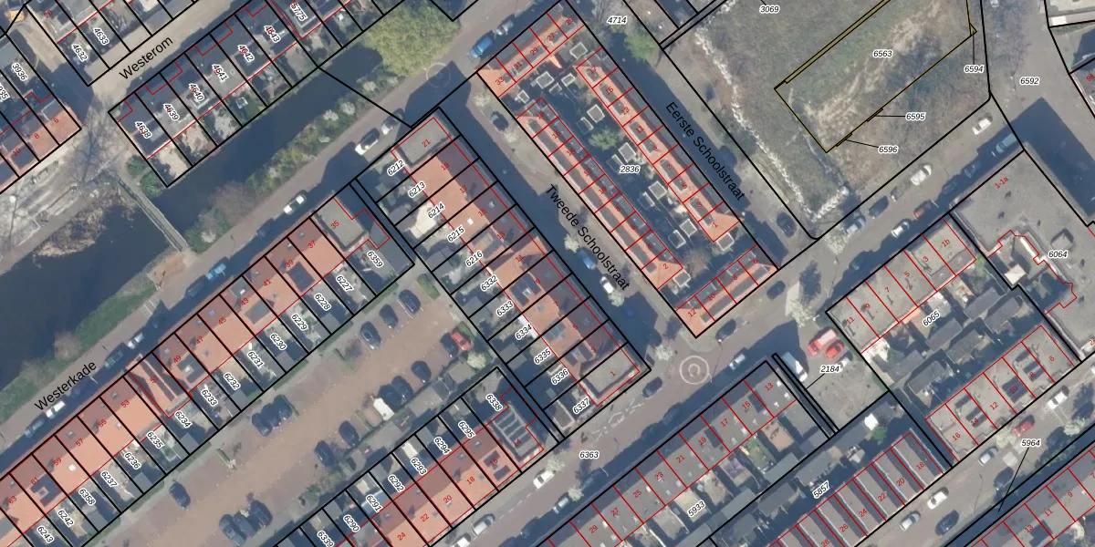 Gebruik de zoekbalk of klik op een perceel voor informatie over de adressen binnen dit perceel.