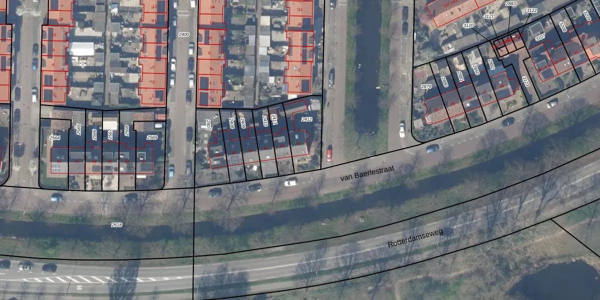 van Baerlestraat 51 is gelegen op kadastraal perceel GDA01F2412. Deze kadastrale aanduiding is uniek en wordt gebruikt door het Kadaster om eigendomsrechten en andere zakelijke rechten vast te leggen. Het perceel maakt onderdeel uit van de kadastrale gemeente Gouda.