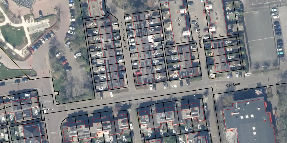 Gebruik de zoekbalk of klik op een perceel voor informatie over de adressen binnen dit perceel.