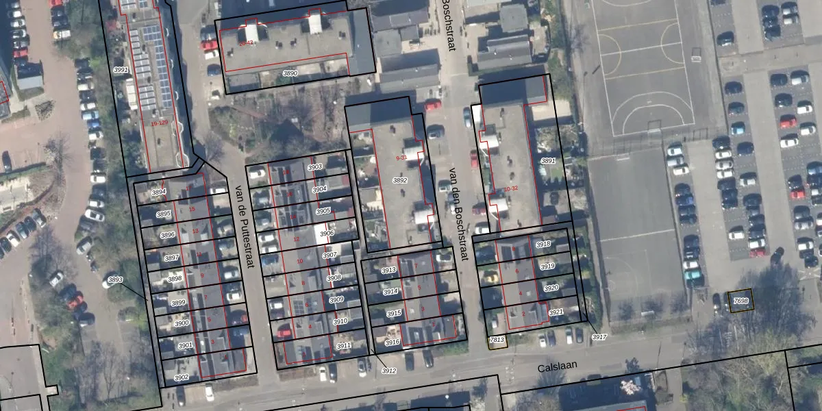 Het perceel waarop van den Boschstraat 17 staat heeft een oppervlakte van 651 m². Dit is een groot perceel. De perceeloppervlakte wordt geregistreerd door het Kadaster. Gedetailleerde informatie over de maten van dit perceel kunt u vinden in het rapport Kadastrale kaart met maatvoering van van den Boschstraat 17.