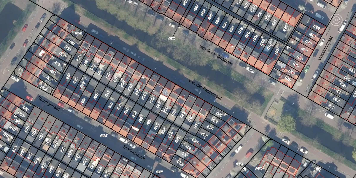 Het perceel waarop van der Palmstraat 17 staat heeft een oppervlakte van 95 m². Dit is een klein perceel. De perceeloppervlakte wordt geregistreerd door het Kadaster. Gedetailleerde informatie over de maten van dit perceel kunt u vinden in het rapport Kadastrale kaart met maatvoering van van der Palmstraat 17.