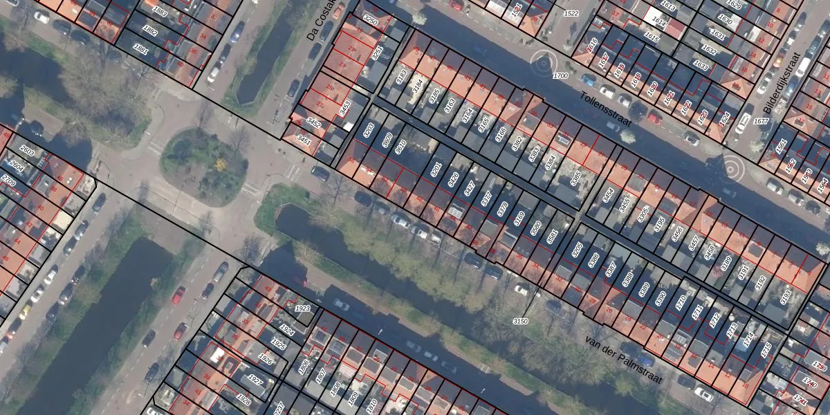 Het perceel waarop van der Palmstraat 48 staat heeft een oppervlakte van 85 m². Dit is een klein perceel. De perceeloppervlakte wordt geregistreerd door het Kadaster. Gedetailleerde informatie over de maten van dit perceel kunt u vinden in het rapport Kadastrale kaart met maatvoering van van der Palmstraat 48.