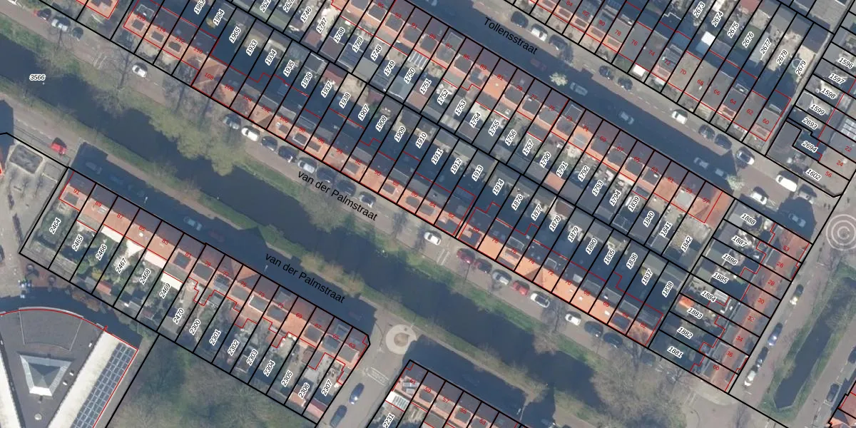 Het perceel waarop van der Palmstraat 84 staat heeft een oppervlakte van 104 m². Dit is een middelgroot perceel. De perceeloppervlakte wordt geregistreerd door het Kadaster. Gedetailleerde informatie over de maten van dit perceel kunt u vinden in het rapport Kadastrale kaart met maatvoering van van der Palmstraat 84.