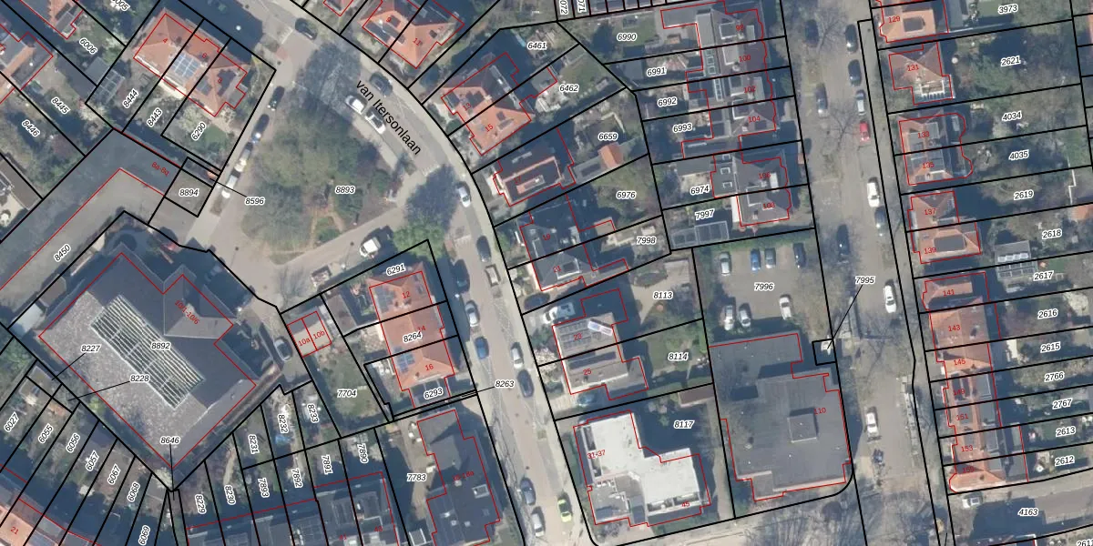 van Itersonlaan 21 is gelegen op kadastraal perceel GDA01A7998. Deze kadastrale aanduiding is uniek en wordt gebruikt door het Kadaster om eigendomsrechten en andere zakelijke rechten vast te leggen. Het perceel maakt onderdeel uit van de kadastrale gemeente Gouda.