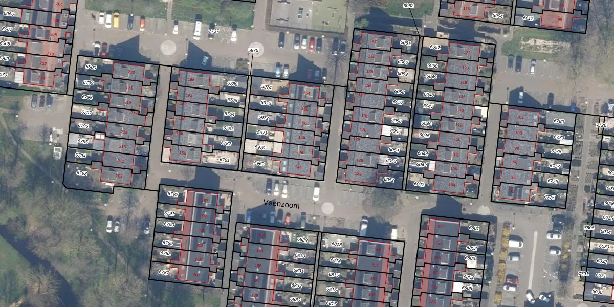Veenzoom 146 is gelegen op kadastraal perceel GDA01M5970. Deze kadastrale aanduiding is uniek en wordt gebruikt door het Kadaster om eigendomsrechten en andere zakelijke rechten vast te leggen. Het perceel maakt onderdeel uit van de kadastrale gemeente Gouda.