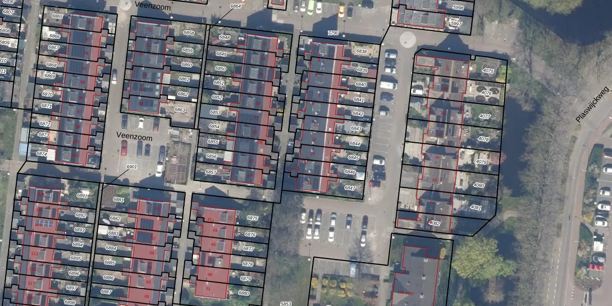 Veenzoom 15 is gelegen op kadastraal perceel GDA01M6845. Deze kadastrale aanduiding is uniek en wordt gebruikt door het Kadaster om eigendomsrechten en andere zakelijke rechten vast te leggen. Het perceel maakt onderdeel uit van de kadastrale gemeente Gouda.