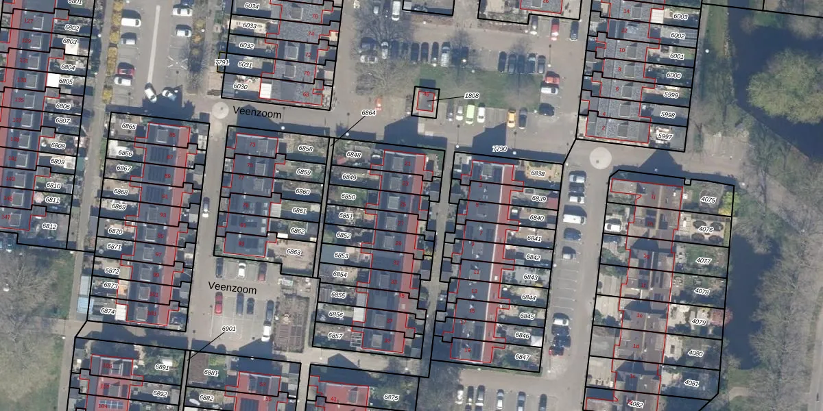 Gebruik de zoekbalk of klik op een perceel voor informatie over de adressen binnen dit perceel.