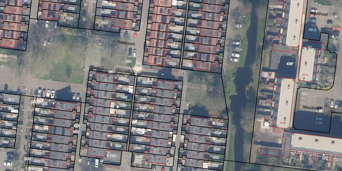 Veenzoom 44 is gelegen op kadastraal perceel GDA01M6018. Deze kadastrale aanduiding is uniek en wordt gebruikt door het Kadaster om eigendomsrechten en andere zakelijke rechten vast te leggen. Het perceel maakt onderdeel uit van de kadastrale gemeente Gouda.