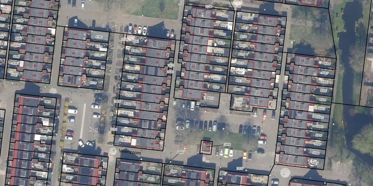 Veenzoom 48 is gelegen op kadastraal perceel GDA01M6019. Deze kadastrale aanduiding is uniek en wordt gebruikt door het Kadaster om eigendomsrechten en andere zakelijke rechten vast te leggen. Het perceel maakt onderdeel uit van de kadastrale gemeente Gouda.