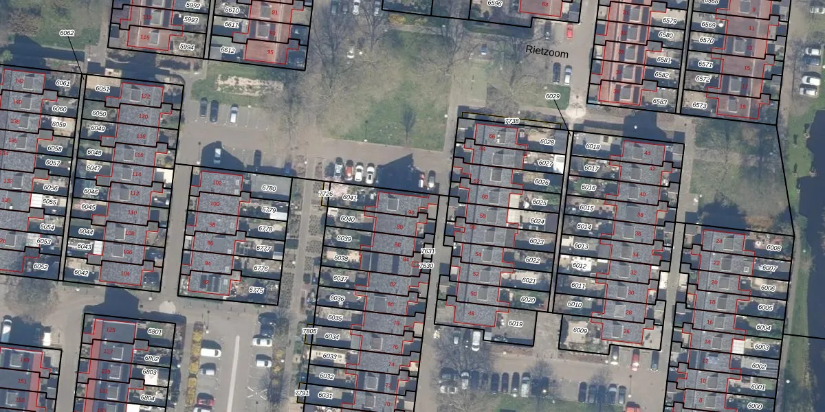 Veenzoom 90 is gelegen op kadastraal perceel GDA01M6041. Deze kadastrale aanduiding is uniek en wordt gebruikt door het Kadaster om eigendomsrechten en andere zakelijke rechten vast te leggen. Het perceel maakt onderdeel uit van de kadastrale gemeente Gouda.