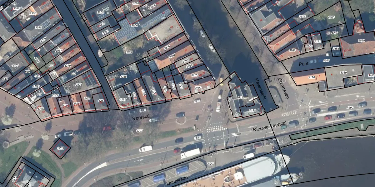 Het perceel waarop Veerstal 2 staat heeft een oppervlakte van 77 m². Dit is een klein perceel. De perceeloppervlakte wordt geregistreerd door het Kadaster. Gedetailleerde informatie over de maten van dit perceel kunt u vinden in het rapport Kadastrale kaart met maatvoering van Veerstal 2.