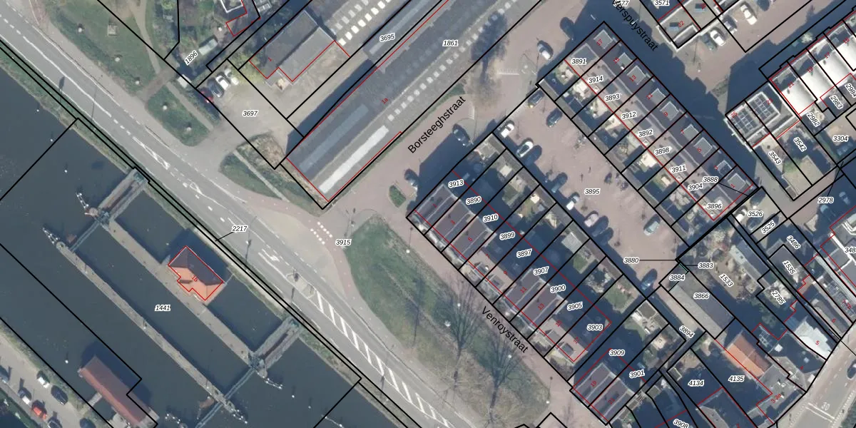 Gebruik de zoekbalk of klik op een perceel voor informatie over de adressen binnen dit perceel.