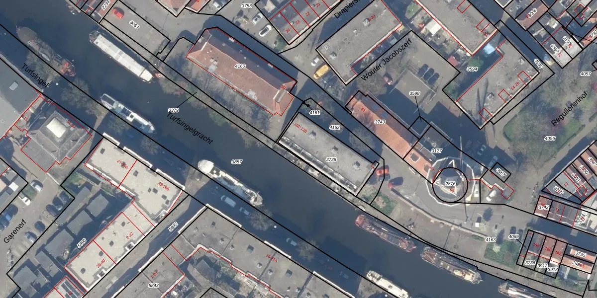 Het adres is gelegen op perceel 3738 in de sectie D en de kadastrale gemeente Gouda. De kadastrale aanduiding is aldus GDA01-D-3738. De gemiddelde perceelgrootte in Gouda is 680,11 m². Dit perceel is kleiner: de perceeloppervlakte bedraagt 398 m². Het grootste perceel in de kadastrale gemeente is 24,2 ha. Het kleinste perceel heeft een oppervlakte van 0 m². Op het perceel zijn 14 adressen aanwezig. De huidige grenzen van het perceel zijn digitaal in de Basisregistratie Kadaster (BRK) geregistreerd op 05-02-1998.