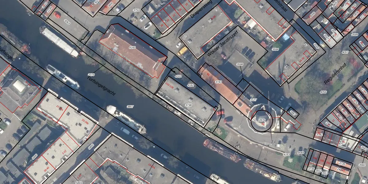Het adres is gelegen op perceel 3738 in de sectie D en de kadastrale gemeente Gouda. De kadastrale aanduiding is aldus GDA01-D-3738. De gemiddelde perceelgrootte in Gouda is 680,11 m². Dit perceel is kleiner: de perceeloppervlakte bedraagt 398 m². Het grootste perceel in de kadastrale gemeente is 24,2 ha. Het kleinste perceel heeft een oppervlakte van 0 m². Op het perceel zijn 14 adressen aanwezig. De laatste wijziging in het de Basisregistratie Kadaster (BRK) was op 05-02-1998.