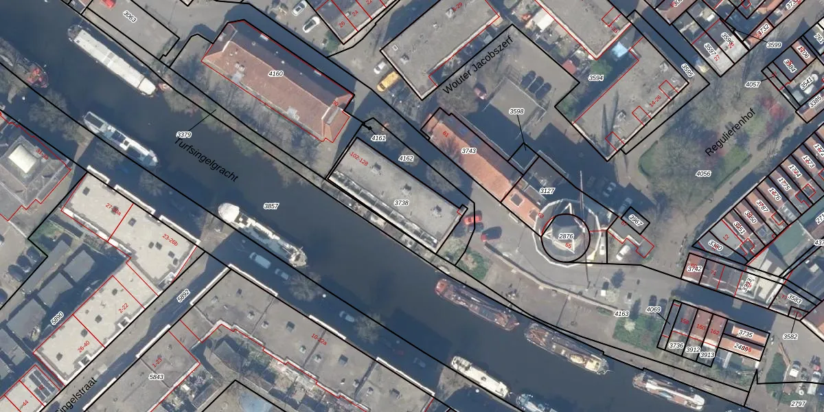 Het adres is gelegen op perceel 3738 in de sectie D en de kadastrale gemeente Gouda. De kadastrale aanduiding is aldus GDA01-D-3738. De gemiddelde perceelgrootte in Gouda is 678,78 m². Dit perceel is kleiner: de perceeloppervlakte bedraagt 398 m². Het grootste perceel in de kadastrale gemeente is 24,2 ha. Het kleinste perceel heeft een oppervlakte van 0 m². Op het perceel zijn 14 adressen aanwezig. De huidige grenzen van het perceel zijn digitaal in de Basisregistratie Kadaster (BRK) geregistreerd op 05-02-1998.
