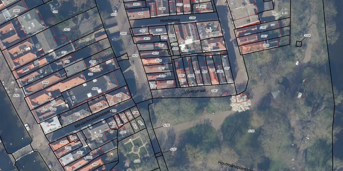 Het perceel waarop Vijverstraat 2 staat heeft een oppervlakte van 61 m². Dit is een klein perceel. De perceeloppervlakte wordt geregistreerd door het Kadaster. Gedetailleerde informatie over de maten van dit perceel kunt u vinden in het rapport Kadastrale kaart met maatvoering van Vijverstraat 2.