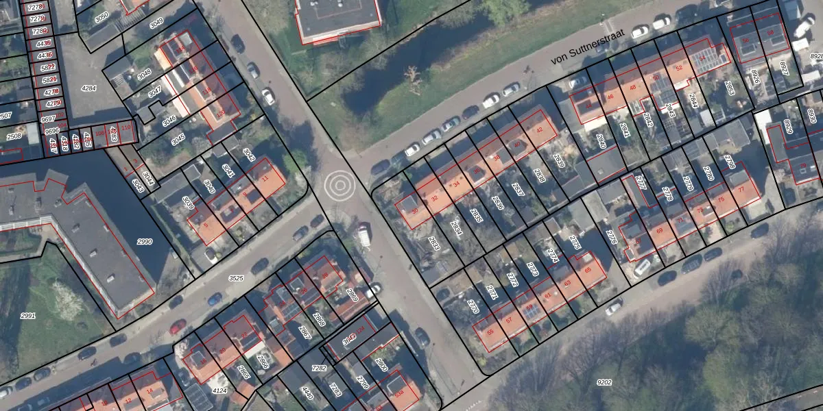 von Suttnerstraat 30 is gelegen op kadastraal perceel GDA01K2833. Deze kadastrale aanduiding is uniek en wordt gebruikt door het Kadaster om eigendomsrechten en andere zakelijke rechten vast te leggen. Het perceel maakt onderdeel uit van de kadastrale gemeente Gouda.
