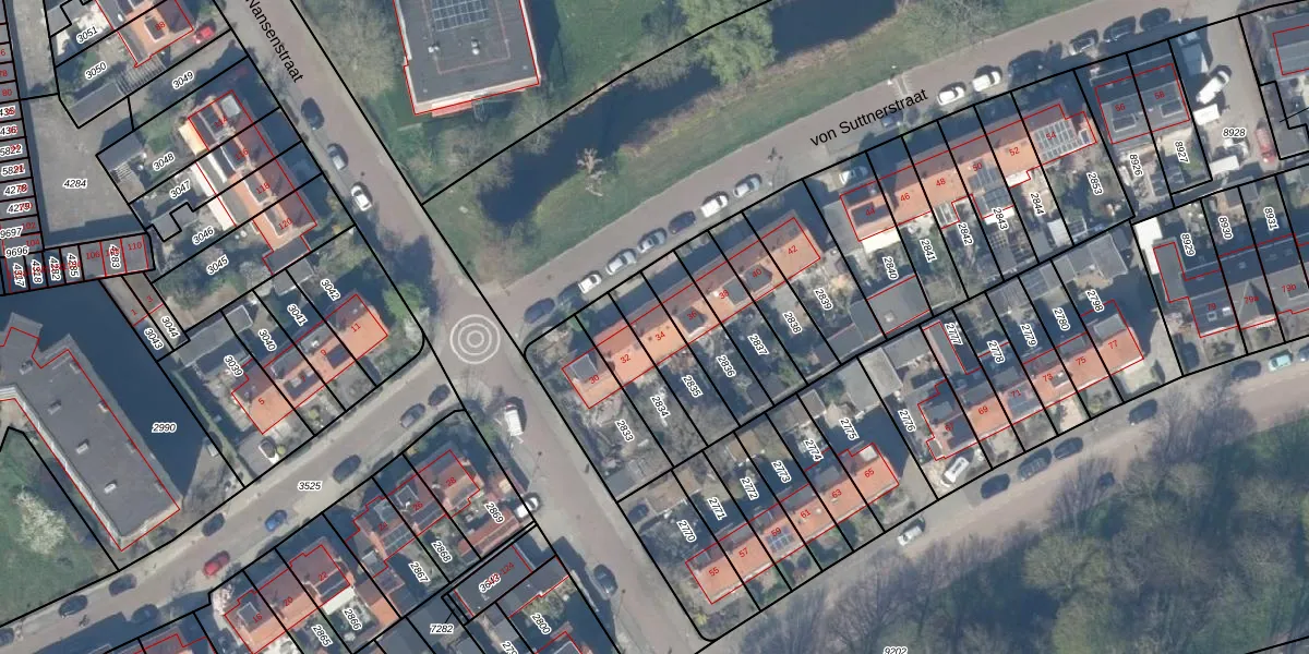 von Suttnerstraat 34 is gelegen op kadastraal perceel GDA01K2835. Deze kadastrale aanduiding is uniek en wordt gebruikt door het Kadaster om eigendomsrechten en andere zakelijke rechten vast te leggen. Het perceel maakt onderdeel uit van de kadastrale gemeente Gouda.