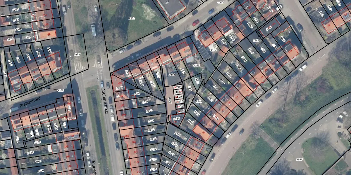 Gebruik de zoekbalk of klik op een perceel voor informatie over de adressen binnen dit perceel.
