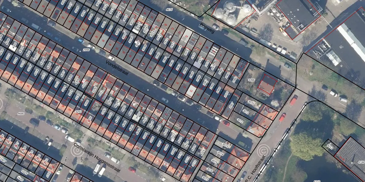 Het perceel waarop Vondelstraat 14 staat heeft een oppervlakte van 70 m². Dit is een klein perceel. De perceeloppervlakte wordt geregistreerd door het Kadaster. Gedetailleerde informatie over de maten van dit perceel kunt u vinden in het rapport Kadastrale kaart met maatvoering van Vondelstraat 14.
