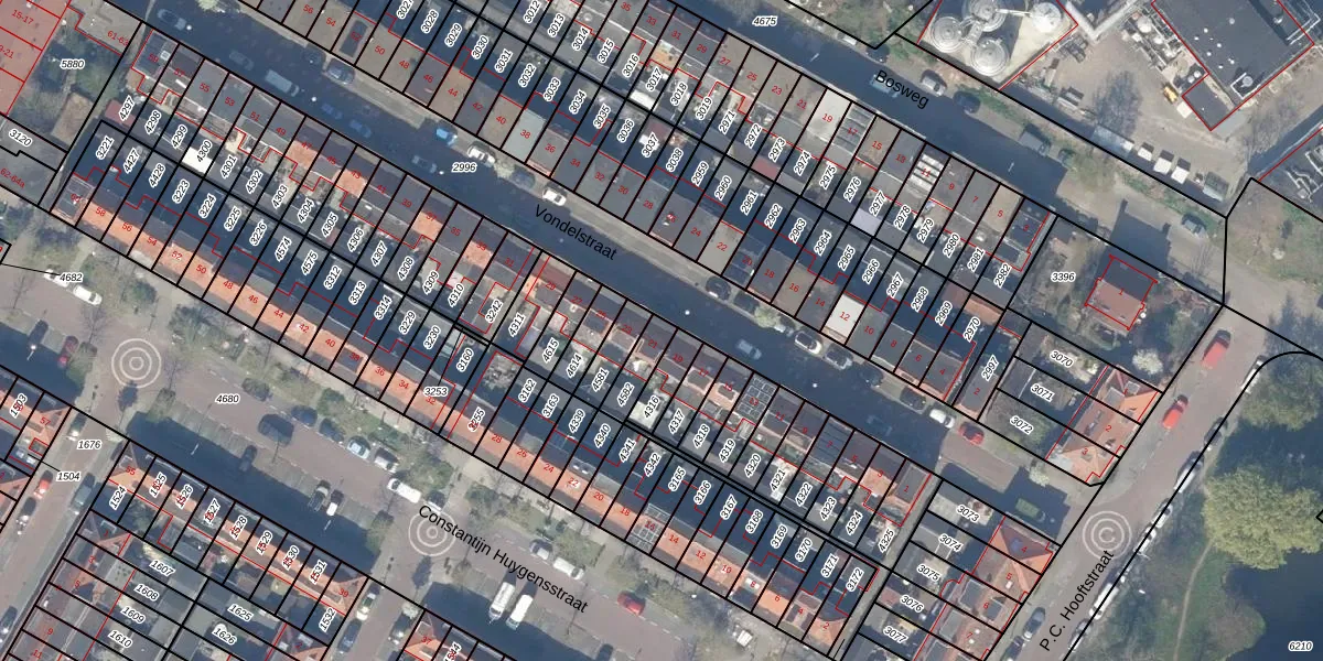 Vondelstraat 21 is gelegen op kadastraal perceel GDA01E4582. Deze kadastrale aanduiding is uniek en wordt gebruikt door het Kadaster om eigendomsrechten en andere zakelijke rechten vast te leggen. Het perceel maakt onderdeel uit van de kadastrale gemeente Gouda.