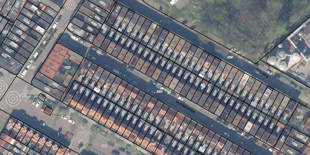 Vondelstraat 44 is gelegen op kadastraal perceel GDA01E3030. Deze kadastrale aanduiding is uniek en wordt gebruikt door het Kadaster om eigendomsrechten en andere zakelijke rechten vast te leggen. Het perceel maakt onderdeel uit van de kadastrale gemeente Gouda.