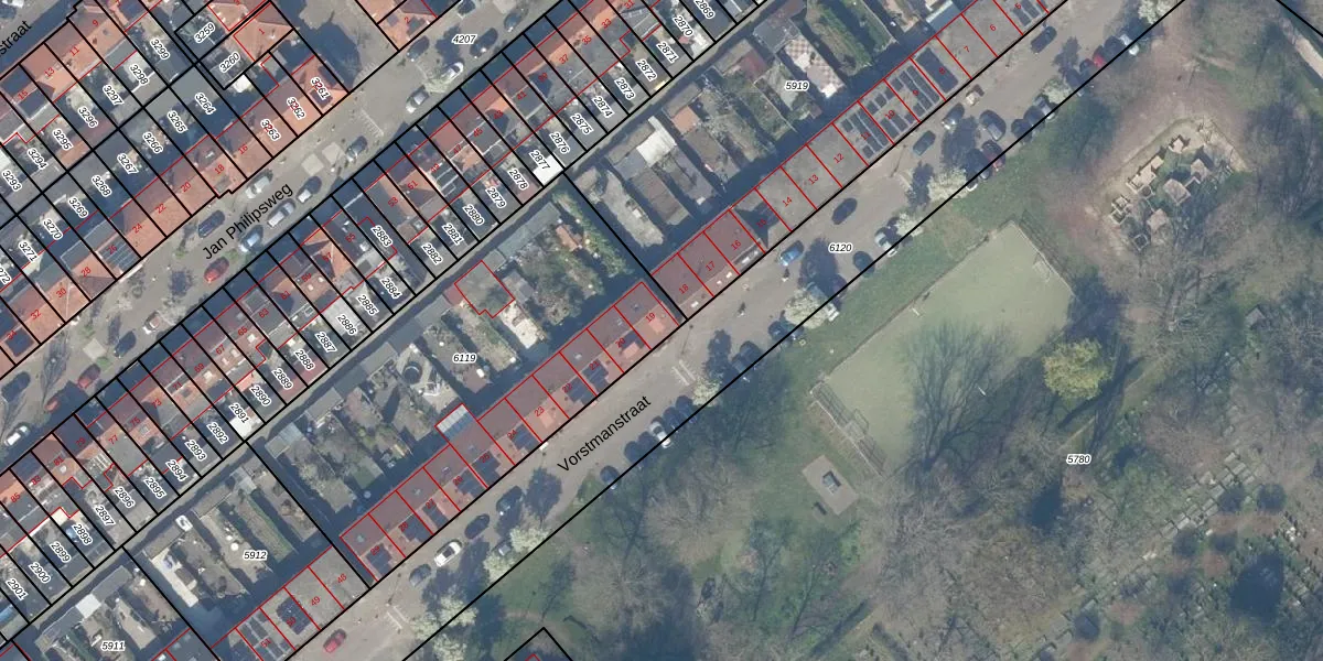Vorstmanstraat 19 is gelegen op kadastraal perceel GDA01E6119. Deze kadastrale aanduiding is uniek en wordt gebruikt door het Kadaster om eigendomsrechten en andere zakelijke rechten vast te leggen. Het perceel maakt onderdeel uit van de kadastrale gemeente Gouda.