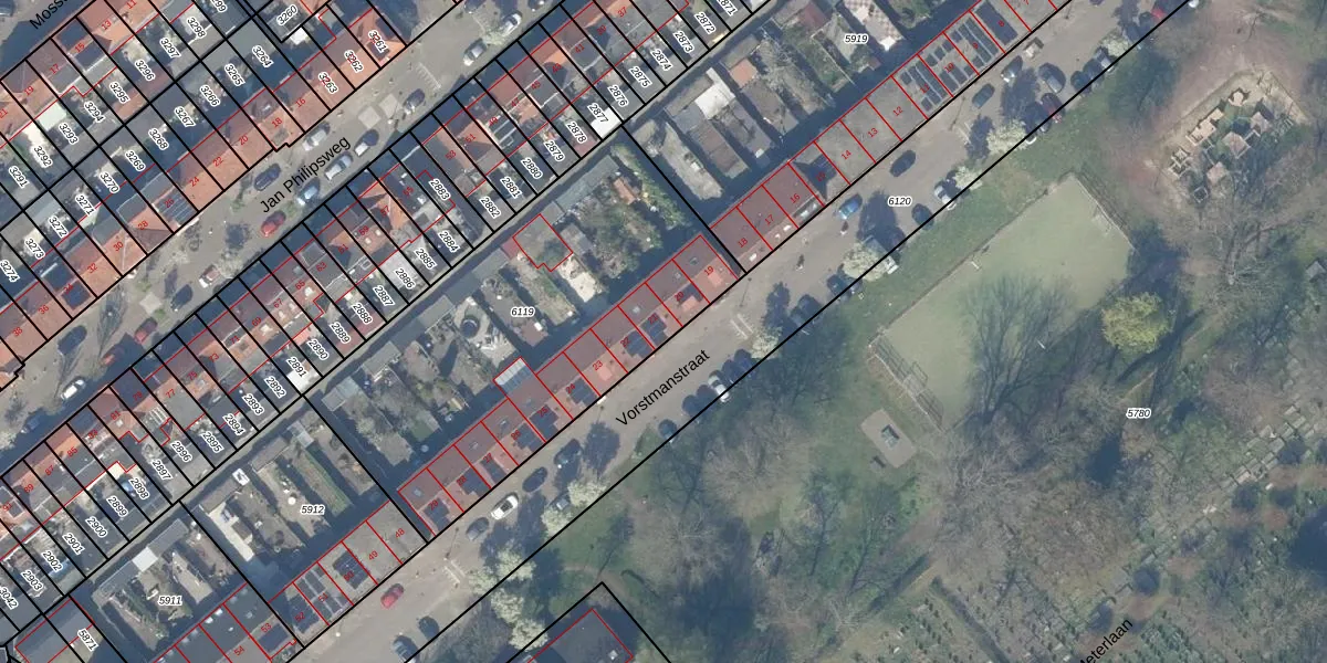 Vorstmanstraat 21 is gelegen op kadastraal perceel GDA01E6119. Deze kadastrale aanduiding is uniek en wordt gebruikt door het Kadaster om eigendomsrechten en andere zakelijke rechten vast te leggen. Het perceel maakt onderdeel uit van de kadastrale gemeente Gouda.