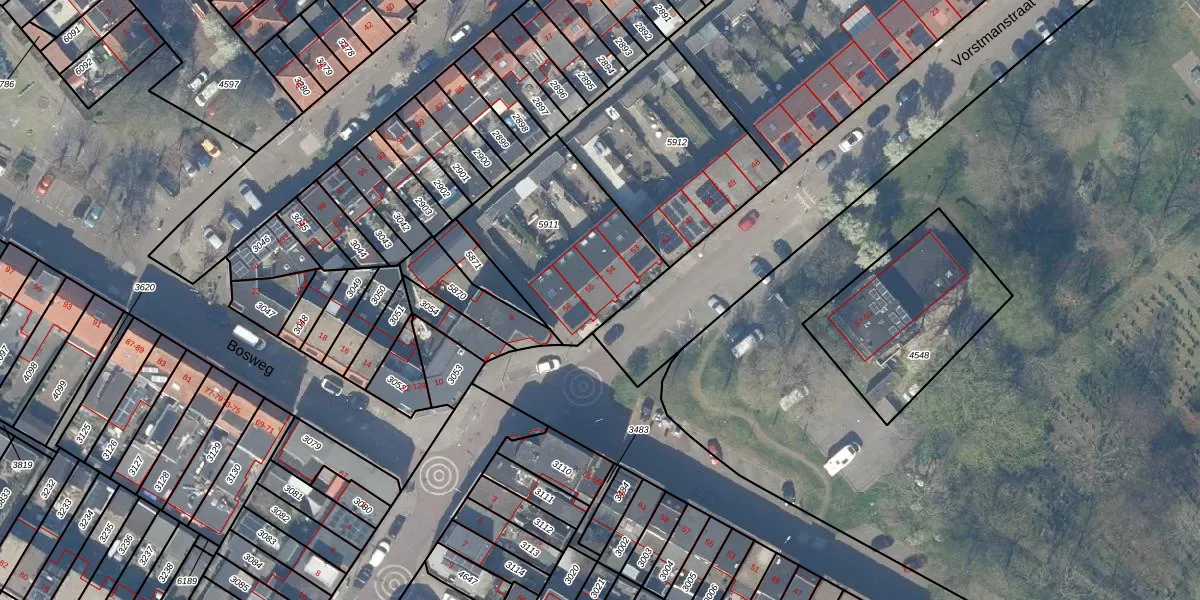 Vorstmanstraat 55 is gelegen op kadastraal perceel GDA01E5911. Deze kadastrale aanduiding is uniek en wordt gebruikt door het Kadaster om eigendomsrechten en andere zakelijke rechten vast te leggen. Het perceel maakt onderdeel uit van de kadastrale gemeente Gouda.
