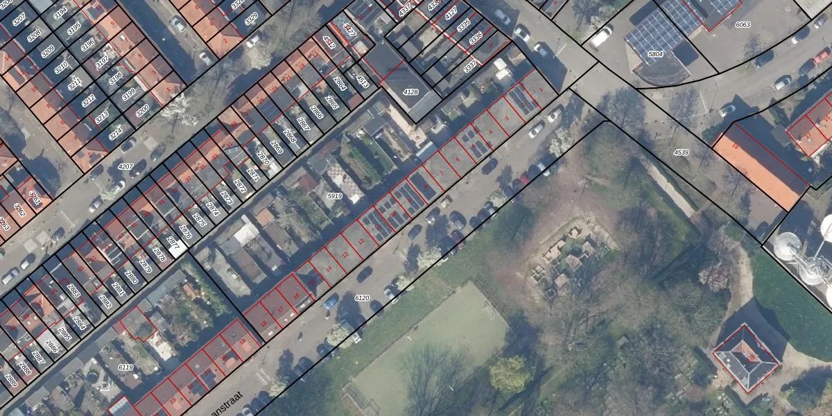 Het perceel waarop Vorstmanstraat 9 staat heeft een oppervlakte van 2342 m². Dit is een zeer groot perceel. De perceeloppervlakte wordt geregistreerd door het Kadaster. Gedetailleerde informatie over de maten van dit perceel kunt u vinden in het rapport Kadastrale kaart met maatvoering van Vorstmanstraat 9.