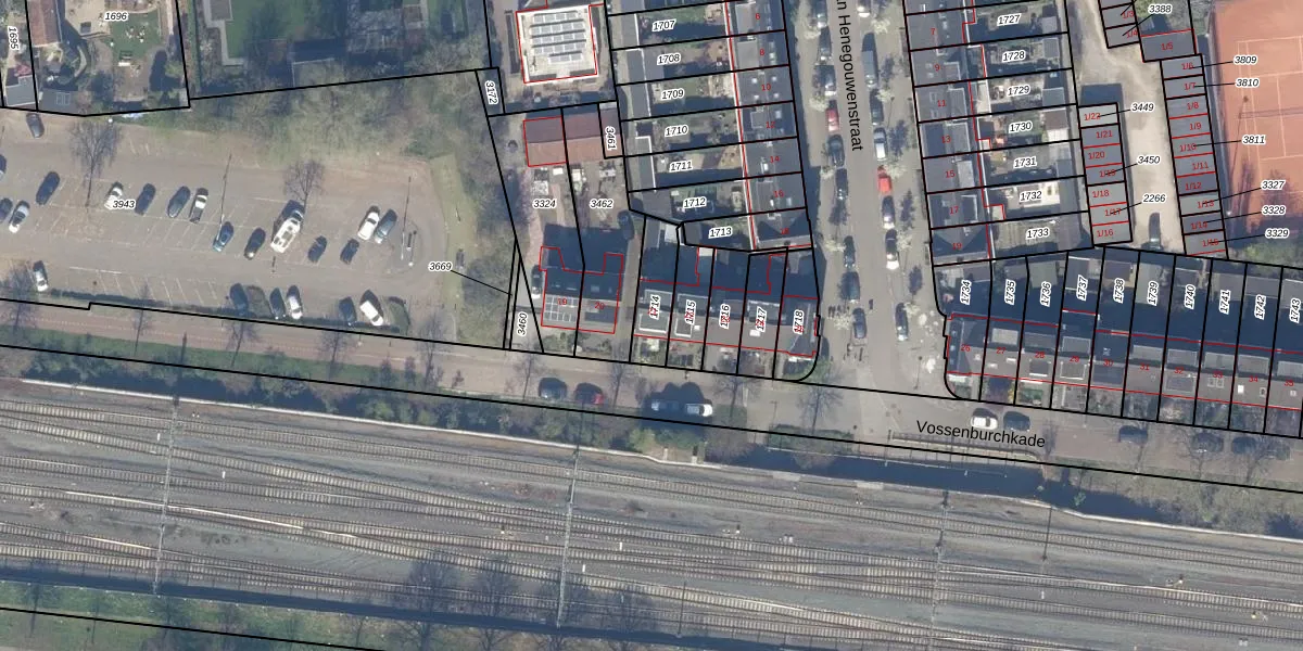 Vossenburchkade 21 is gelegen op kadastraal perceel GDA01I1714. Deze kadastrale aanduiding is uniek en wordt gebruikt door het Kadaster om eigendomsrechten en andere zakelijke rechten vast te leggen. Het perceel maakt onderdeel uit van de kadastrale gemeente Gouda.