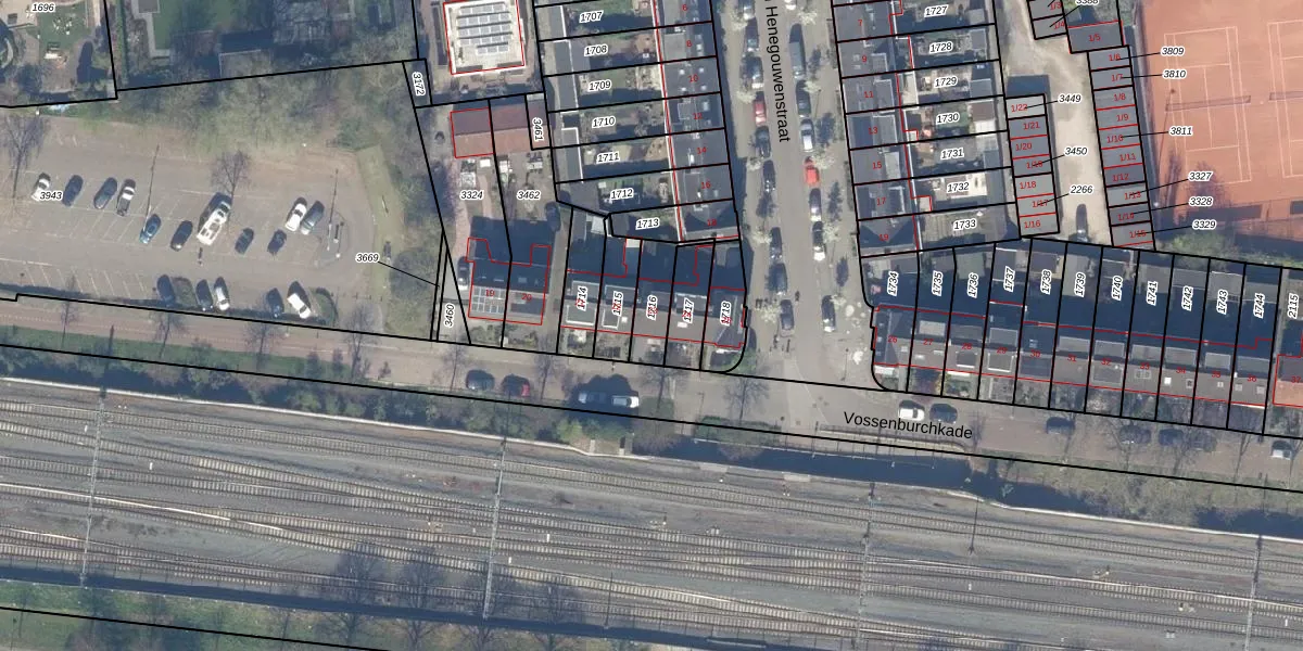 Vossenburchkade 23 is gelegen op kadastraal perceel GDA01I1716. Deze kadastrale aanduiding is uniek en wordt gebruikt door het Kadaster om eigendomsrechten en andere zakelijke rechten vast te leggen. Het perceel maakt onderdeel uit van de kadastrale gemeente Gouda.