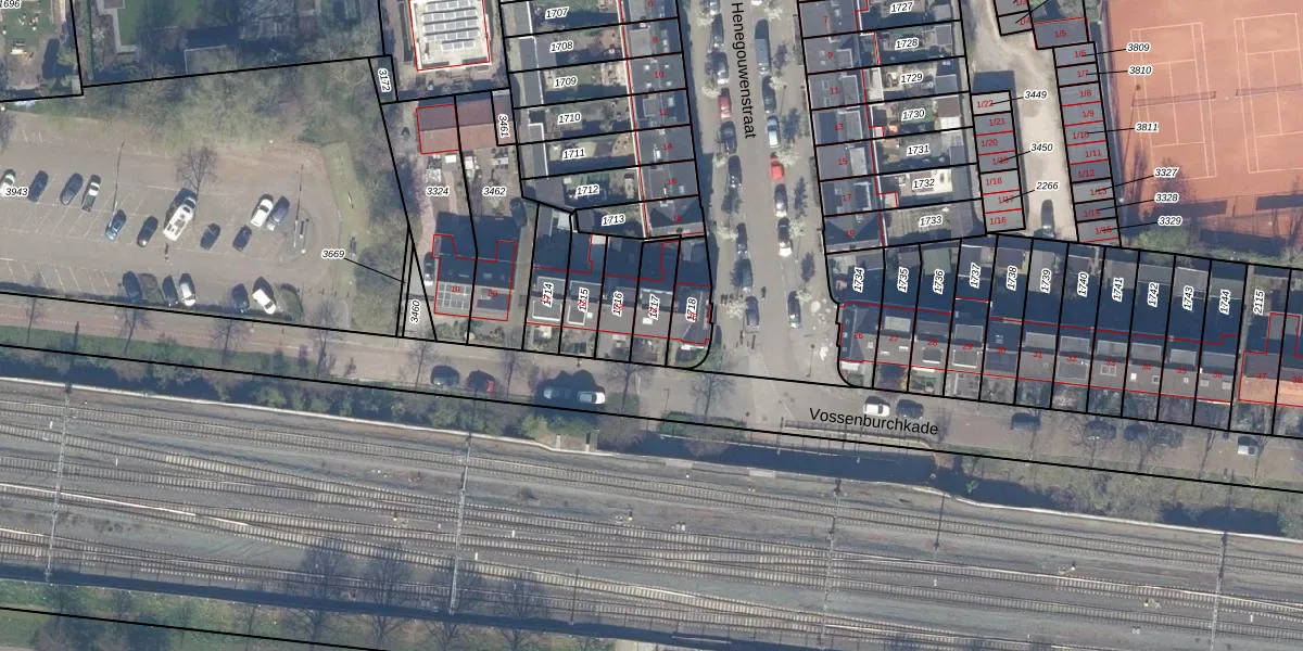 Vossenburchkade 24 is gelegen op kadastraal perceel GDA01I1717. Deze kadastrale aanduiding is uniek en wordt gebruikt door het Kadaster om eigendomsrechten en andere zakelijke rechten vast te leggen. Het perceel maakt onderdeel uit van de kadastrale gemeente Gouda.