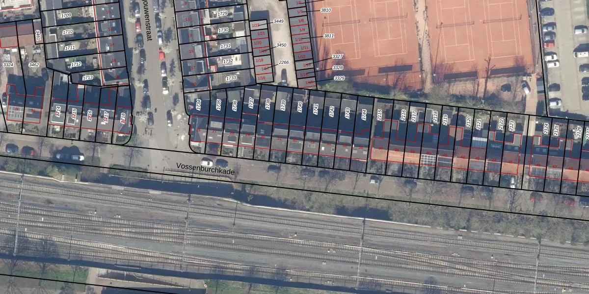 Vossenburchkade 32 is gelegen op kadastraal perceel GDA01I1740. Deze kadastrale aanduiding is uniek en wordt gebruikt door het Kadaster om eigendomsrechten en andere zakelijke rechten vast te leggen. Het perceel maakt onderdeel uit van de kadastrale gemeente Gouda.