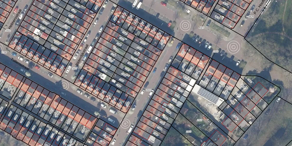 Gebruik de zoekbalk of klik op een perceel voor informatie over de adressen binnen dit perceel.