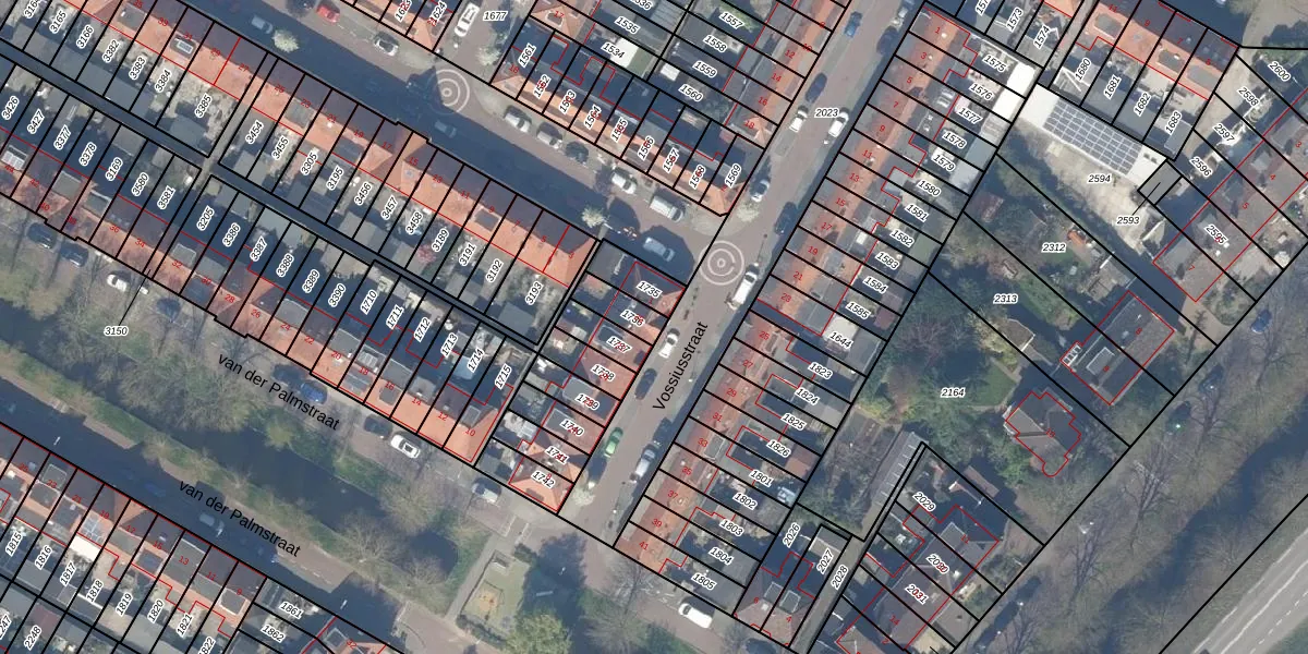 Gebruik de zoekbalk of klik op een perceel voor informatie over de adressen binnen dit perceel.