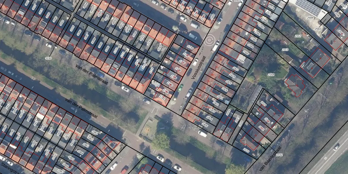 Vossiusstraat 28 is gelegen op kadastraal perceel GDA01F1740. Deze kadastrale aanduiding is uniek en wordt gebruikt door het Kadaster om eigendomsrechten en andere zakelijke rechten vast te leggen. Het perceel maakt onderdeel uit van de kadastrale gemeente Gouda.