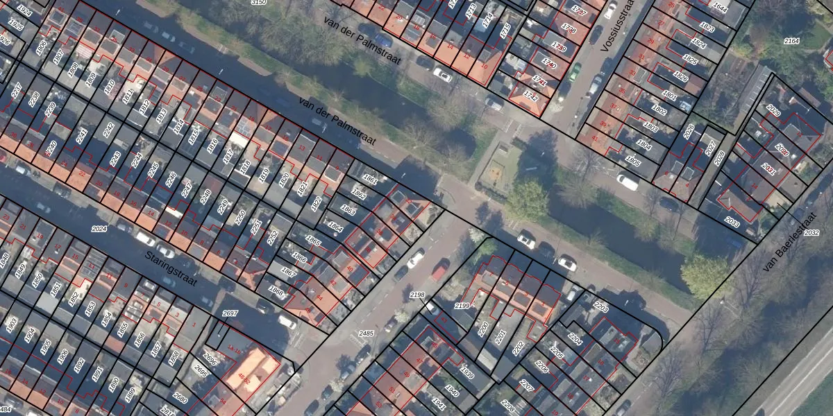 Gebruik de zoekbalk of klik op een perceel voor informatie over de adressen binnen dit perceel.