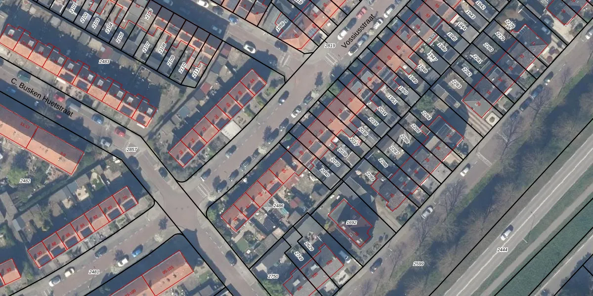 Vossiusstraat 83 is gelegen op kadastraal perceel GDA01F2040. Deze kadastrale aanduiding is uniek en wordt gebruikt door het Kadaster om eigendomsrechten en andere zakelijke rechten vast te leggen. Het perceel maakt onderdeel uit van de kadastrale gemeente Gouda.