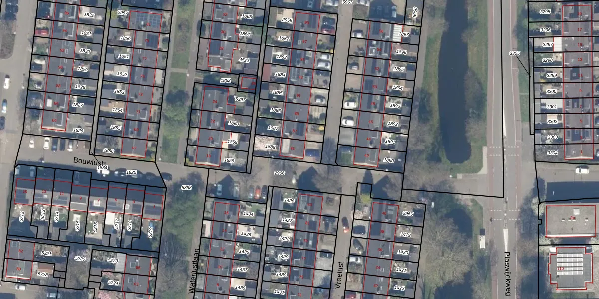 Gebruik de zoekbalk of klik op een perceel voor informatie over de adressen binnen dit perceel.
