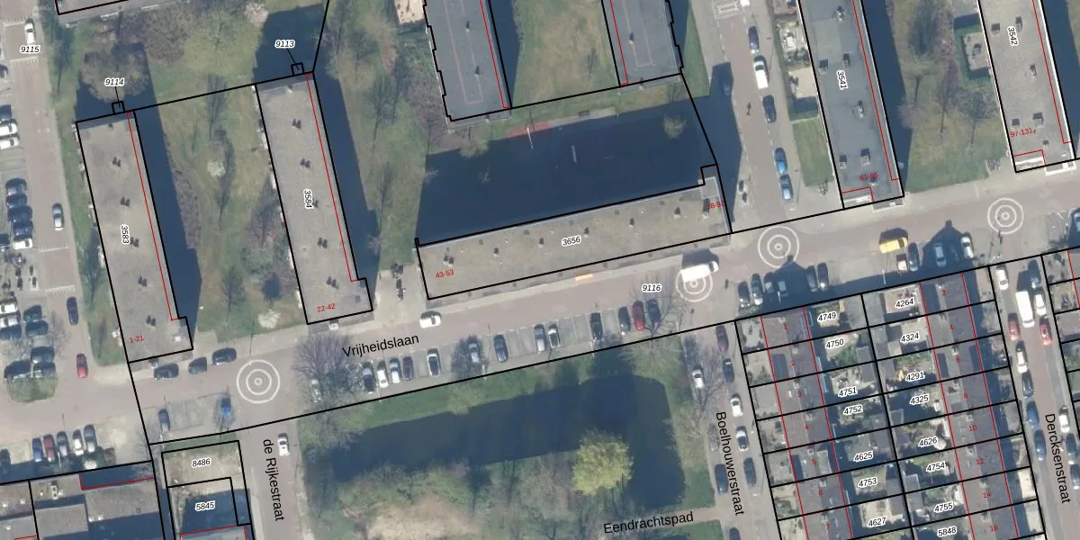 Het perceel waarop Vrijheidslaan 47 staat heeft een oppervlakte van 583 m². Dit is een groot perceel. De perceeloppervlakte wordt geregistreerd door het Kadaster. Gedetailleerde informatie over de maten van dit perceel kunt u vinden in het rapport Kadastrale kaart met maatvoering van Vrijheidslaan 47.