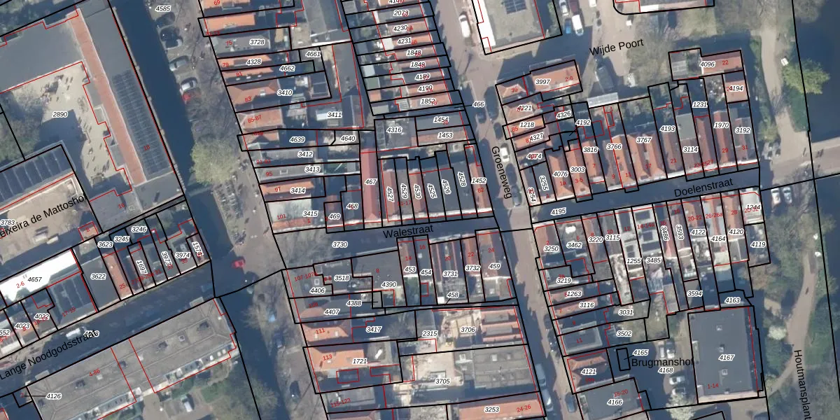 Walestraat 13 is gelegen op kadastraal perceel GDA01C4530. Deze kadastrale aanduiding is uniek en wordt gebruikt door het Kadaster om eigendomsrechten en andere zakelijke rechten vast te leggen. Het perceel maakt onderdeel uit van de kadastrale gemeente Gouda.